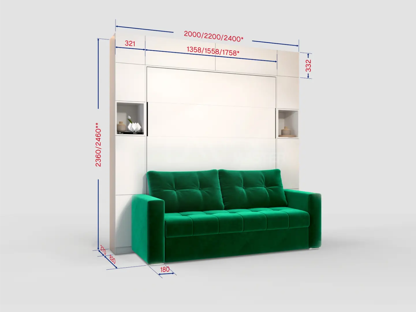 Дополнительные опции, такие как: освещение, зарядное устройство, розетки, мягкое изголовье, матрас, мягкий борт - не входят в стоимость шкаф-кровати "Comfort Space Balance". Вы всегда можете самостоятельно их добавить в опциях или написать менеджеру при оформлении заказа.
