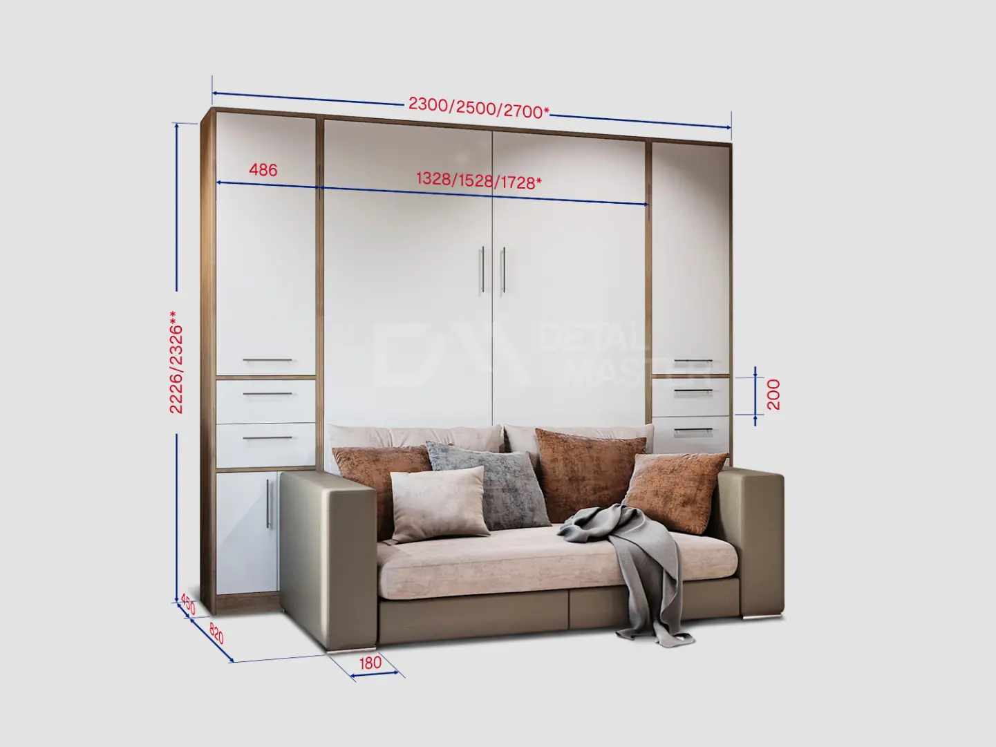 Дополнительные опции, такие как: освещение, зарядное устройство, розетки, мягкое изголовье, матрас - не входят в стоимость шкаф-кровати "Extra Start". Вы всегда можете их добавить в опциях или написав менеджеру при оформлении заказа.